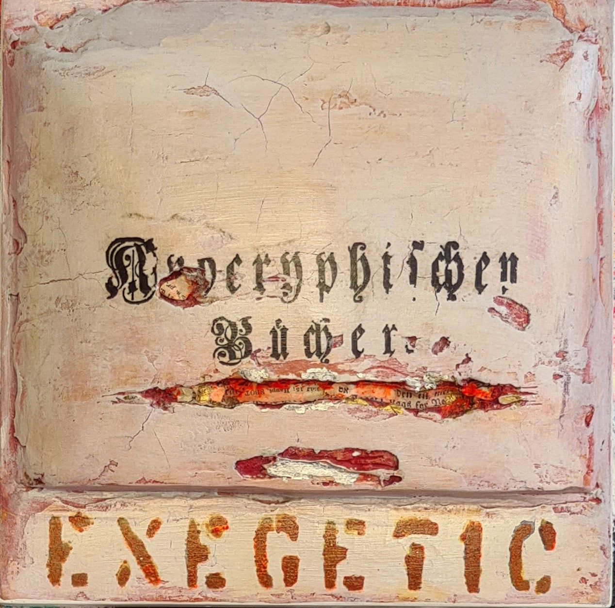 Tematikken omfatter ofte elementer som palimpsest – ideen om at skrabe et eksisterende budskab af for at påføre et nyt – samt palingenese, en form for genfødsel. Dette ses i Leanders brug af overmaling, afskrabning og indridsede fragmenter, der fremstår som arkæologiske lag eller minder, der er skrabet frem fra fortiden.